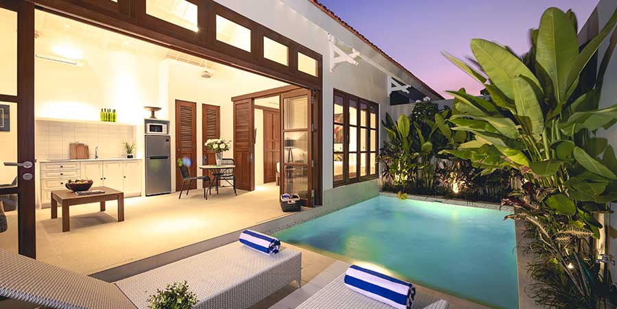 The air-conditioned villa is composed of 1 separate bedroom, a living room, a fully equipped kitchen, and 1 bathroom. A flat-screen TV is featured.